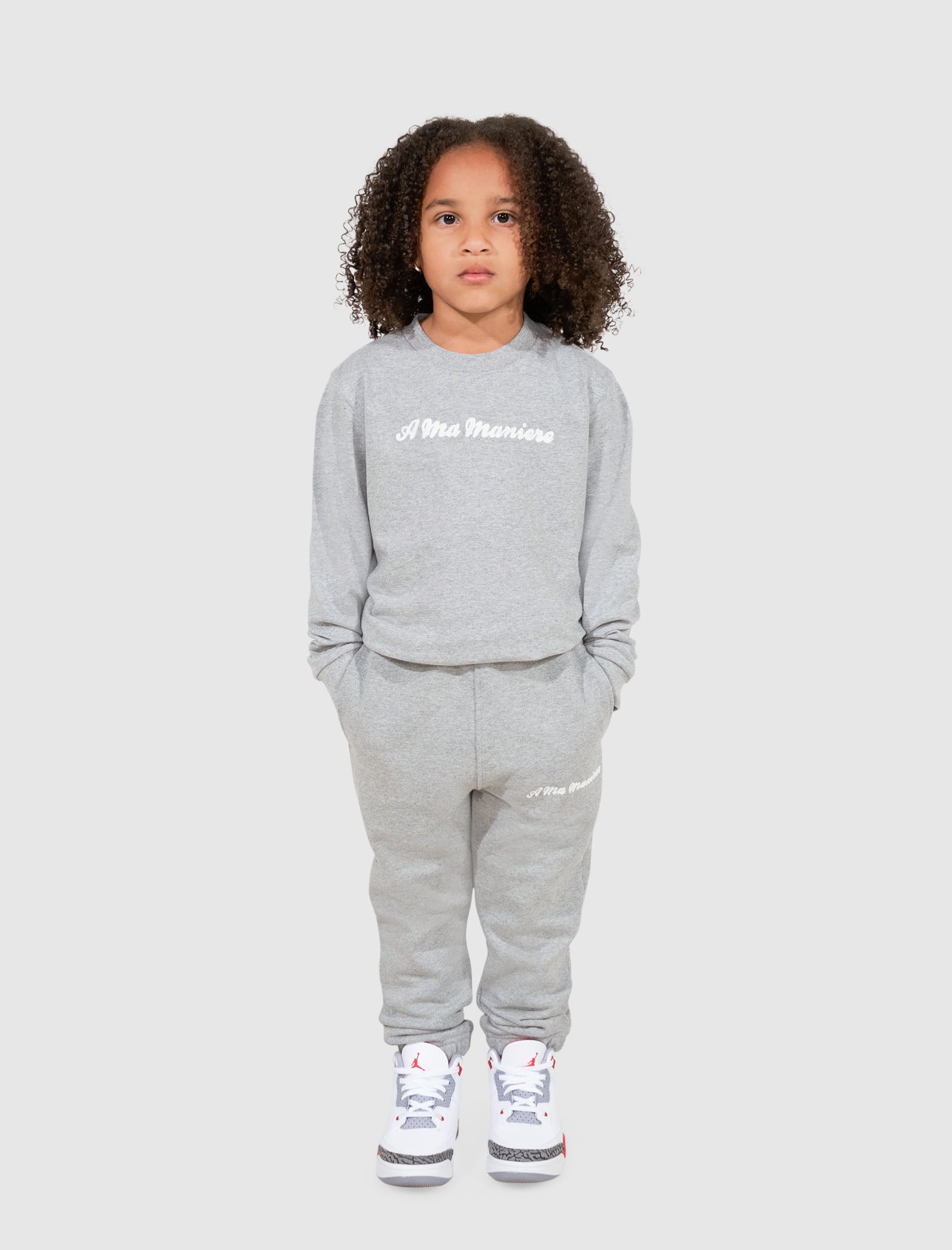Experience our USA-made kids cotton sweatpant, designed for supreme comfort and fashionable flair. The stitched cursive lettering adds a simple yet eye-catching detail. The A Ma Maniére kids logo sweatpant is a wonderful enhancement for your collection. Personalize it and embrace the beauty of refined living. Grab yours now and elevate your style!