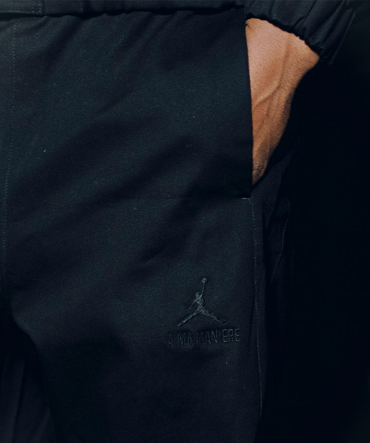 Releasing alongside the footwear, the Jordan x A Ma Maniére capsule presents essential forms. The knit polo ($120 USD; XS–2X) offers a refined take on sport heritage; the track jacket ($300 USD; XS–2X) introduces structure with a smooth monogram-lined interior, and the matching track pant ($200 USD; XS–2X) brings ease and polish into one silhouette. Each piece sits in conversation with the shoe.