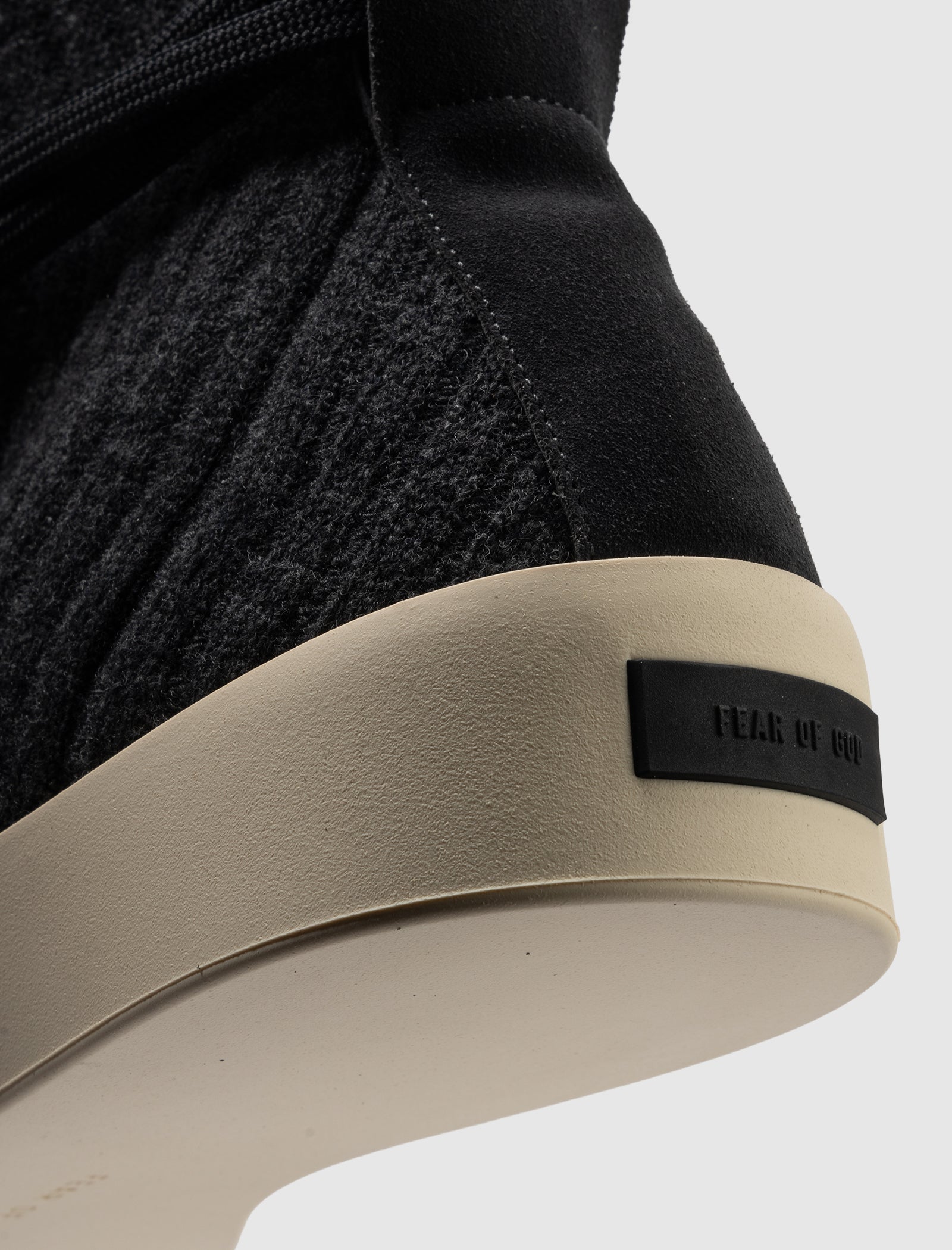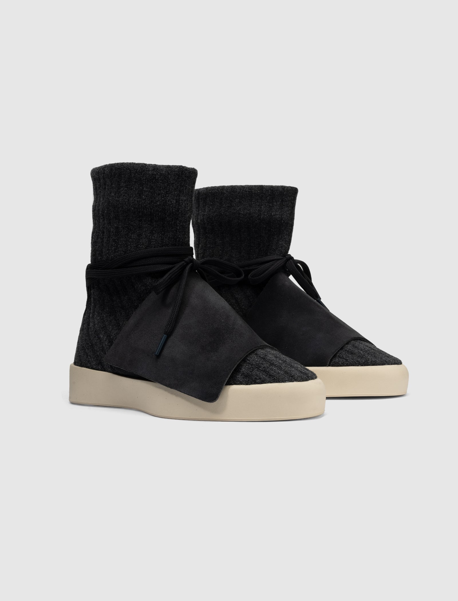 High-Top-Sneaker. Obermaterial aus Wollstrick mit gerippter Textur. Innenfutter komplett aus Neopren. Breiter Riemen aus Wildleder vorne. Schnürung vorne um den Knöchel gewickelt. Gummi-Zwischensohle mit Gummilasche auf der Rückseite. Gummi-Laufsohle.