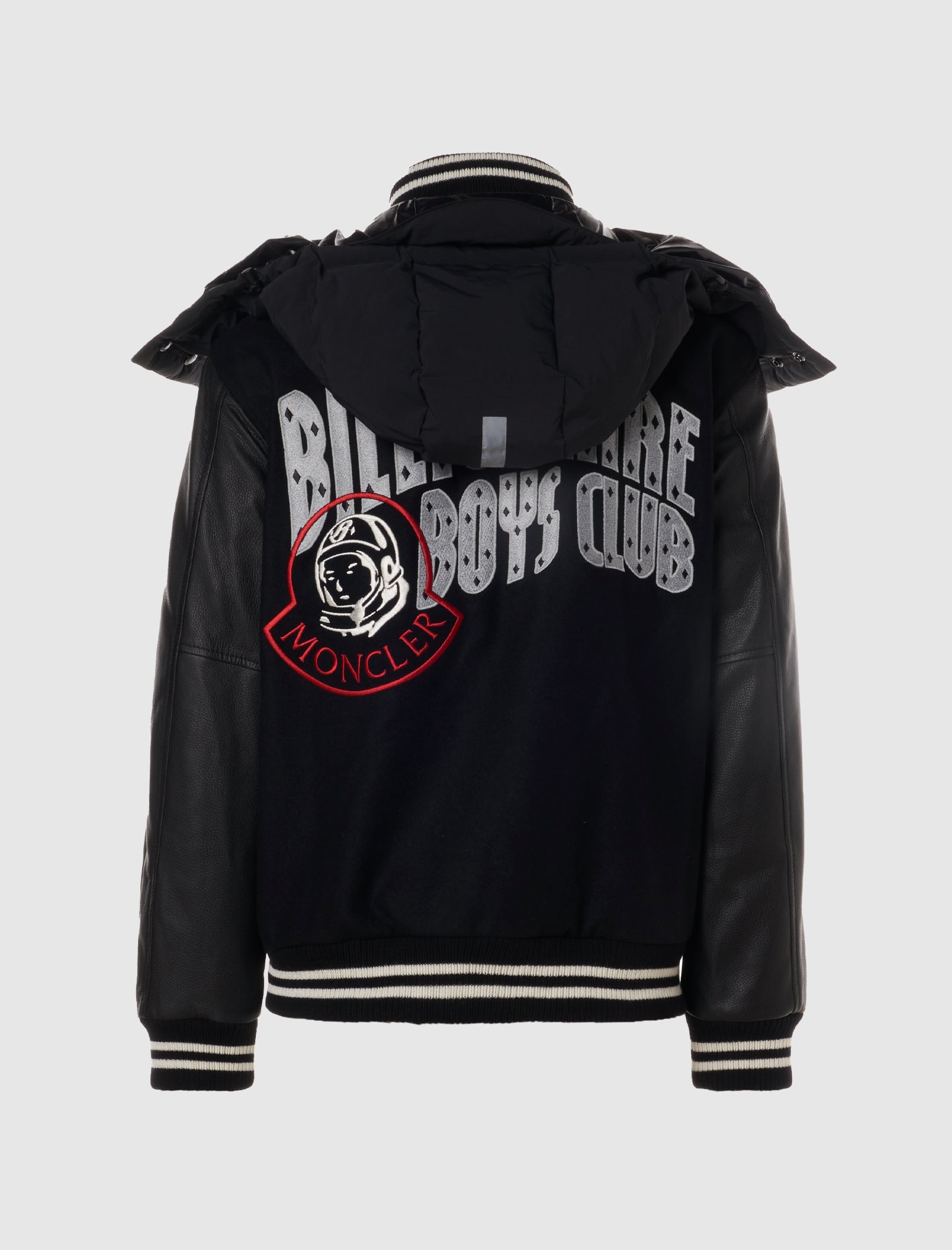 Collegejacke aus Schurwolle mit normaler Passform. Abnehmbare Kapuze. Kragen, Bündchen und Saum aus Rippstrick. Gestickter Logo-Aufdruck und Logo-Text auf Brust und Rücken. Zwei Seitentaschen. Ärmel aus Lammleder. Druckknopfverschluss vorne.