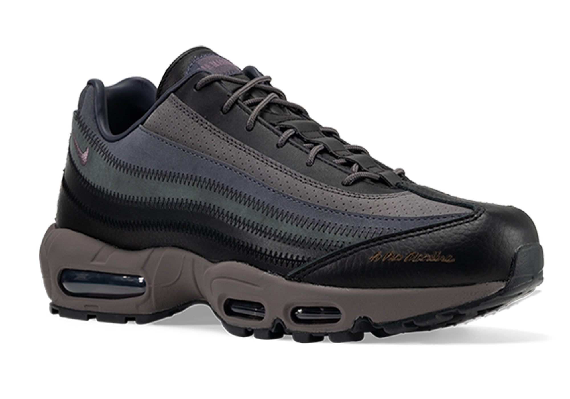 The A Ma Maniére x Nike Air Max 95 “Hand Wash Cold” is a reflection of love in its purest form—measured not just in design, but in devotion. Built from rich black suede and smooth violet ore leather, every layer is stacked with purpose, precision, and poise. From the laser-etched branding that whispers legacy to the jacquard monogram satin lining that hugs your step, each detail is a love letter to those who move with grace against the grain.