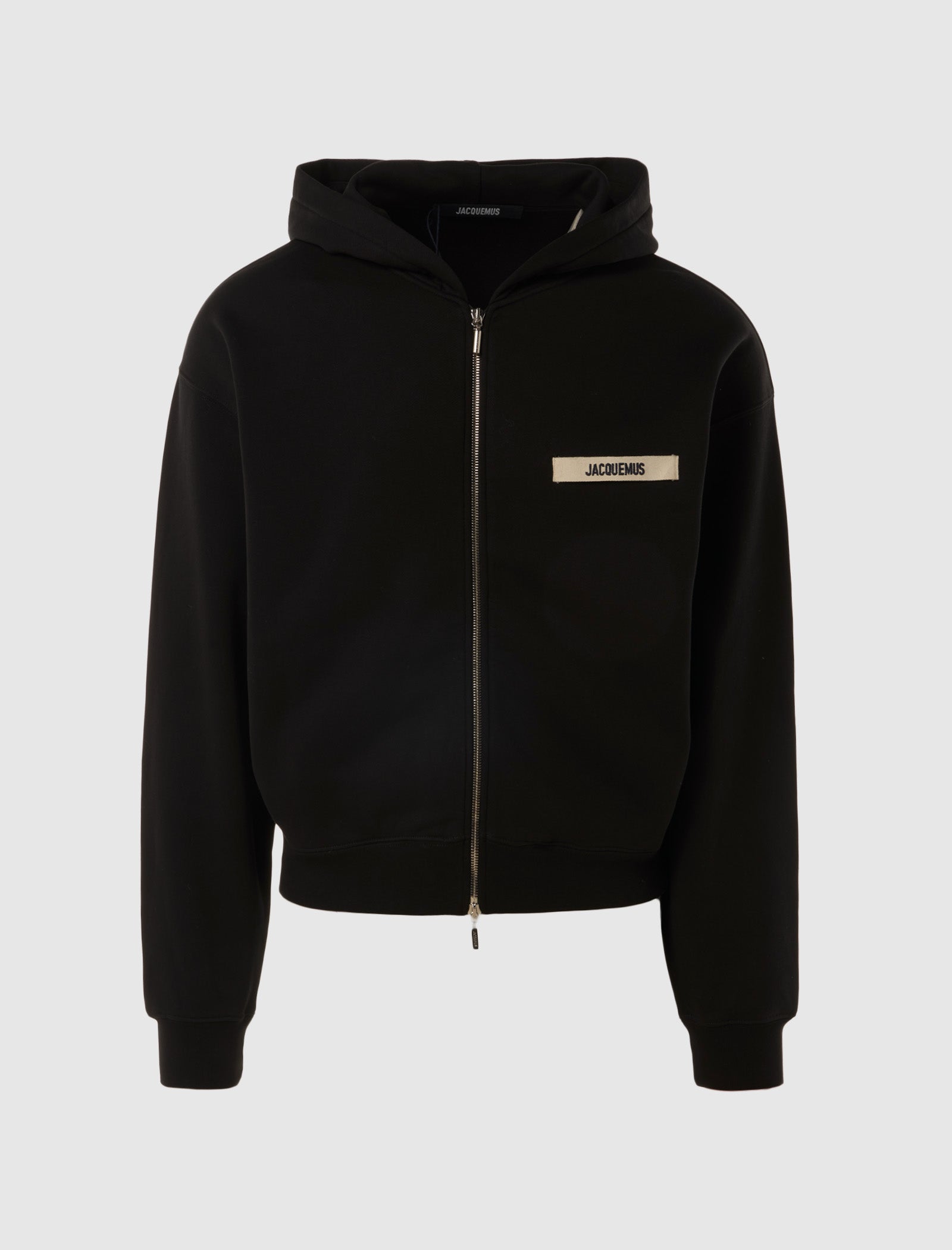 Rediscover the cozy comfort of the Jacquemus classic-fit fleece cotton hoodie! Featuring a fixed hood to keep you warm, an embroidered grosgrain logo on the chest, and two pockets at the sides for all your essentials. The ribbed cuffs and hem add a stylish touch, while the zip closure at the center front ensures a secure fit. Stay warm and stylish in this must-have hoodie.