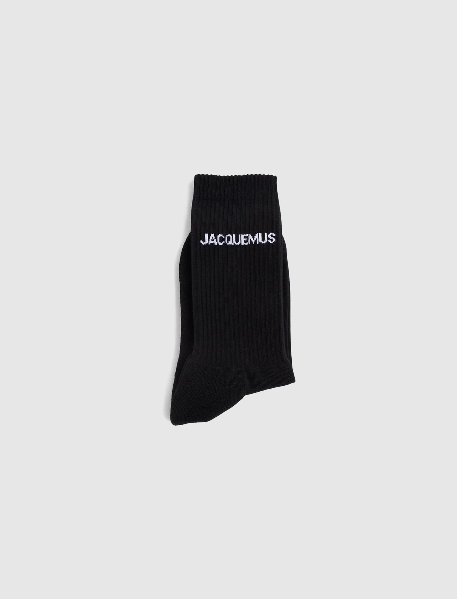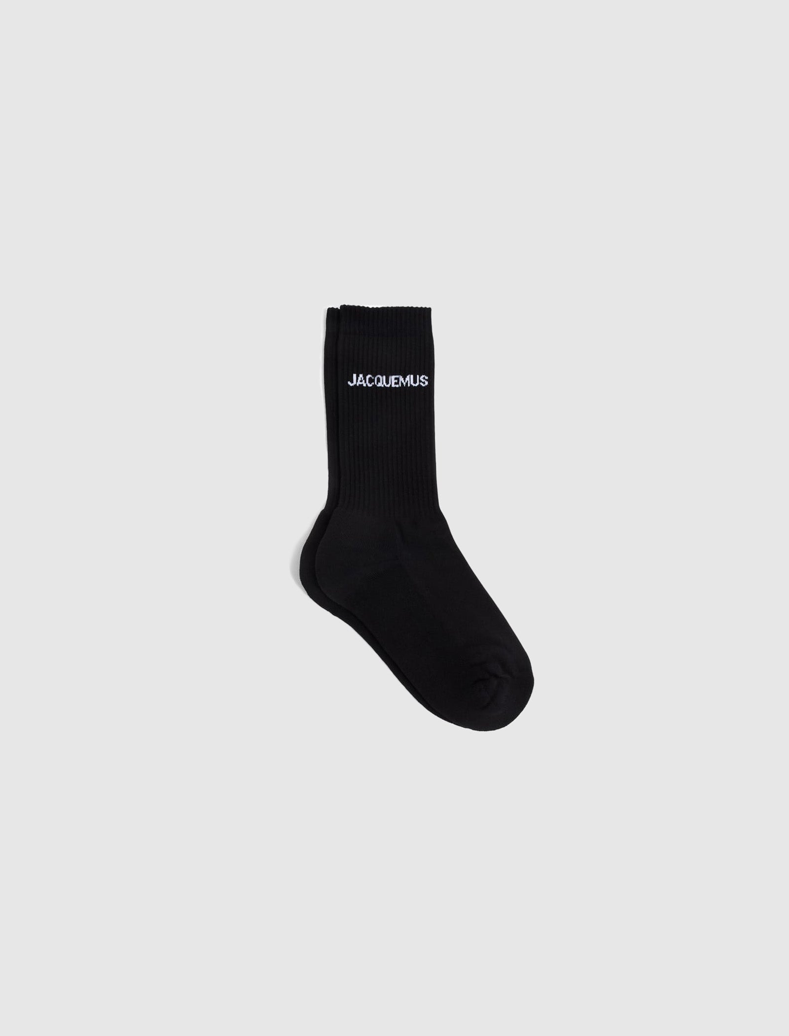 Experience socks redefined by Jacquemus. These mid-calf socks are made from flexible organic cotton jersey and highlight a striking logo on the rib-knit cuffs, combining comfort with distinctive style.