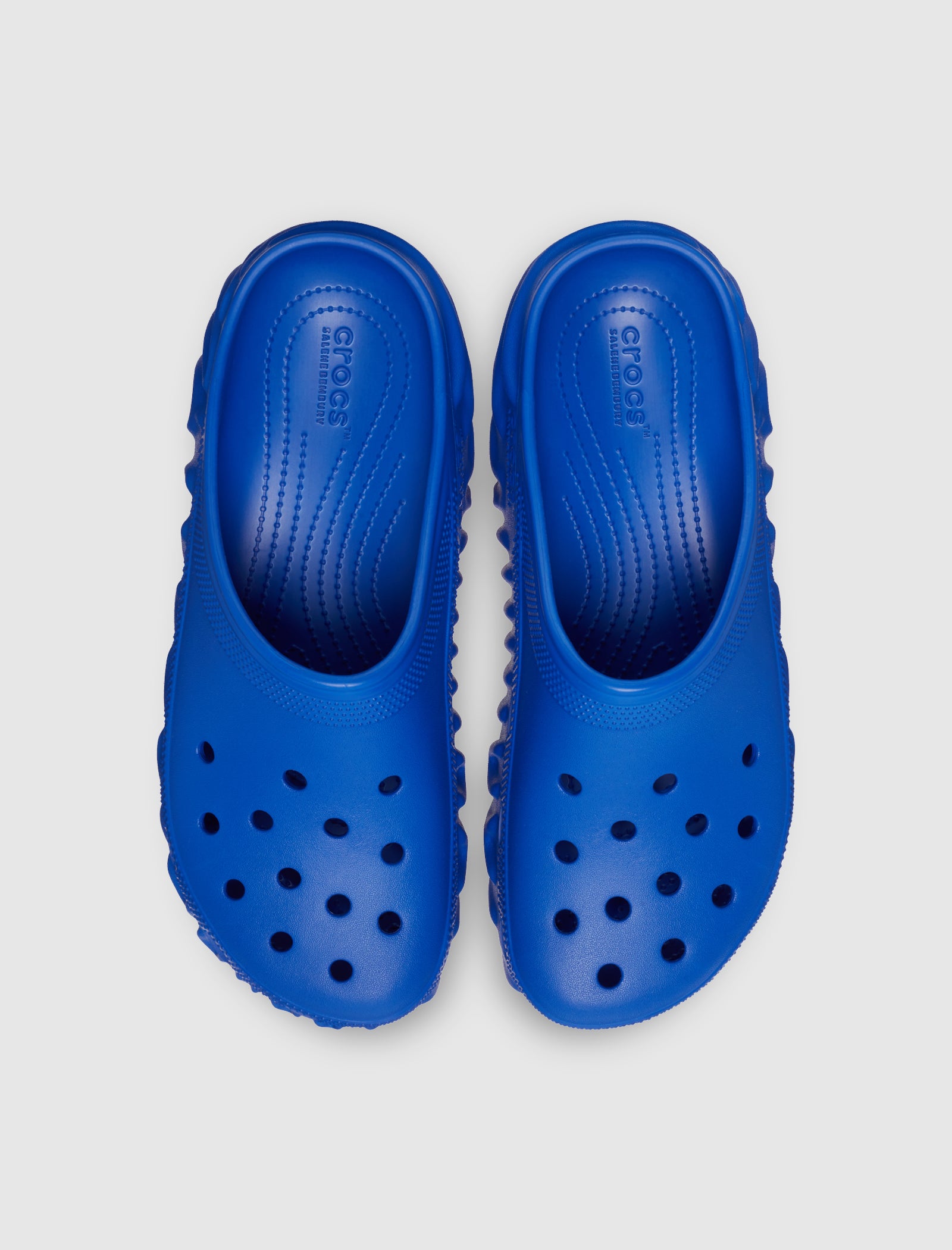 Croslite composite foam clogs. Perforated upper. Ridged midsole, and outsole. Elevated heel.