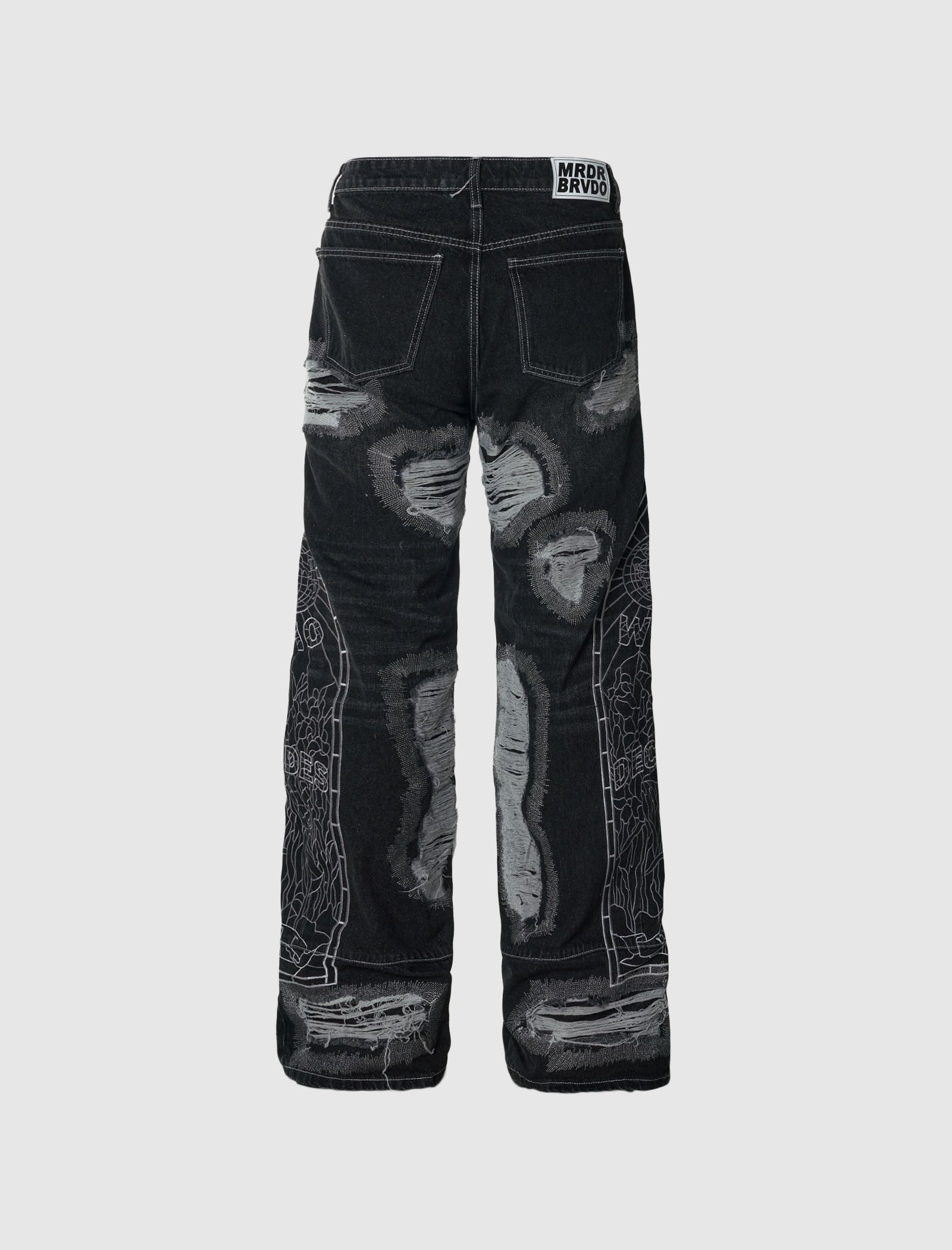 Discover the power of Who Decides War with these classic-fit, non-stretch denim jeans. Featuring five pockets and embroidered logo graphics at the outseams, these jeans exude a confident and bold style. The expertly crafted fading, distressing, laddering, and contrast stitching add a touch of personality to these must-have jeans.